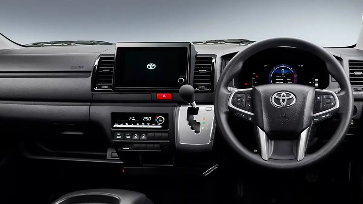 انتقالاً إلى داخل المقصورة، واكبت النُسخة المُجددة من تويوتا هاي اس 2026 التطور التقني عبر تقديم ميزات جديدة شأن نظام الترفيه والمعلومات الجديد والمُدار قياسيًا عبر شاشة قياس 8 بوصات، تتكامل مع لوحة عدادات رقمية بقياس يصل إلى 7 بوصات، وفي بعض الفئات العلي، سيتم تزويد السيارة بمرآة رؤية خلفية رقمية جديدة كلياً.