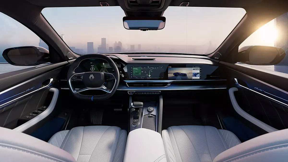في الداخل، تتوسط لوحة القيادة ثلاث شاشات مدمجة معًا مقاس 12.3 بوصة لكل شاشة، فيما تسميه رينو «شاشة بانوراما OpenR». ويقترن ذلك بشاشة عرض رأسية للواقع المعزز مقاس 25.6 بوصة، مما يشكل تصميمًا متطورًا للوحة القيادة يختلف عن طرازات رينو الأوروبية، على الرغم من أنه يعمل أيضًا بنظام المعلومات والترفيه القائم على نظام أندرويد من جوجل.