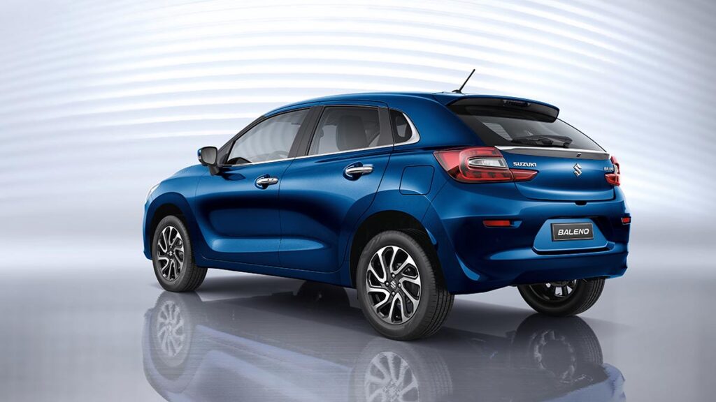 وقد تبنت بالينو 2023 الجديدة تصميمًا مُجددًا للباب الخلفي للسيارة، مع بعض التفاصيل الجديد بالمصابيح الخلفية، وتحديث مظهر العجلات الرياضية للسيارة.