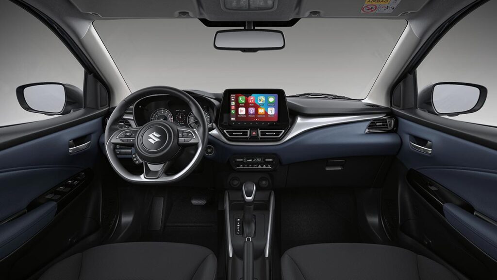 داخليًا تلقت مقصورة سوزوكي بالينو 2023 المجددة تحديثًا شاملًا، مع لوحة قيادة جديدة، ونظام ترفيهي معلوماتي جديد يُمكن أن يصل قياس شاشة التحكم به إلى 9 بوصات، مع دعمه للعرض المتطابق للهواتف عبر تطبيقي أندرويد أوتو، و آبل كار بلاي.