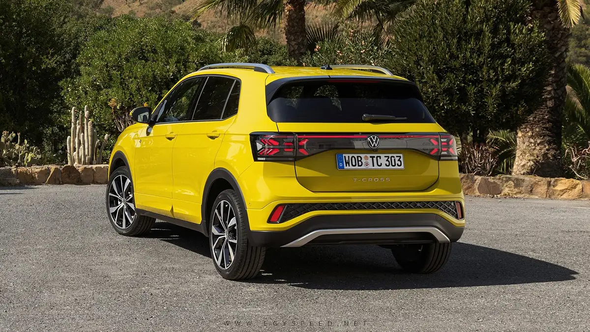 ولم يتغير المظهر الجانبي نهائيًا فقط حصلت فولكس فاجن تي كروس 2024 الجديدة على مجموعة جديدة من العجلات المعدنية والتي تبدأ عند قياس 16، و17 بوصة، أما في الخلف، فأبرز التغيرات فهي رسومات LED الرائعة على شكل حرف «X» بالإنجليزية داخل المصابيح الخلفية مع شريط LED كامل العرض في المنتصف، كما تم تعديل الجزء السفلي من المصد الخلفي.