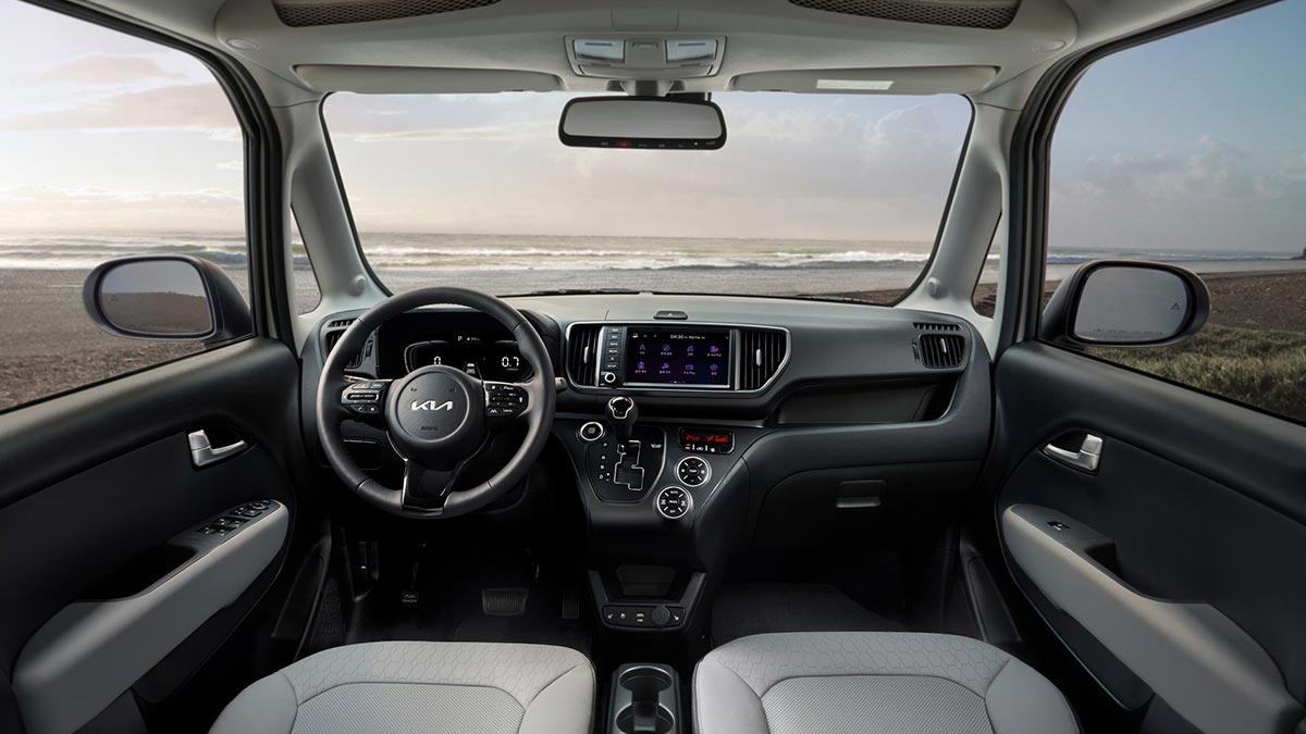داخليًا بقيت المقصورة تقريبًا على حالها دون أي تغيرات شكلية، لكن أضافت كيا بعض الميزات التقنية الجديدة شأن إعتماد شاشة تفاعلية بالحجم الكامل تعمل كلوحة عدادات.