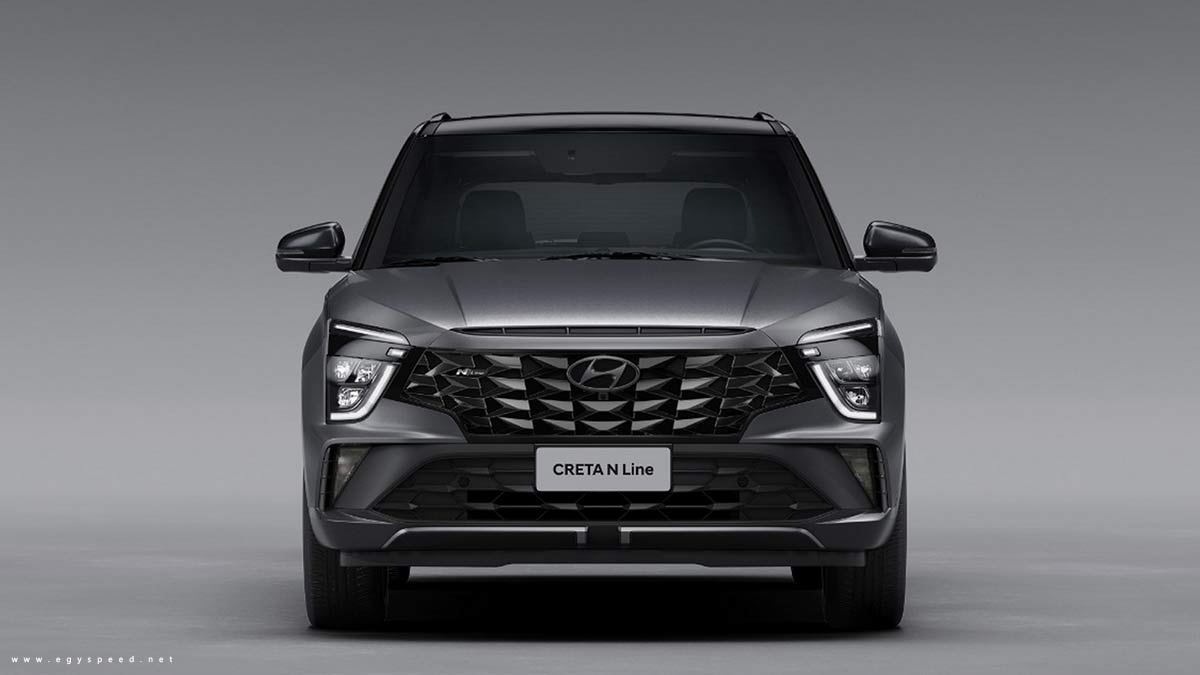 تستفيد هيونداي كريتا N Line الجديدة من مصد أمامي أعيد تصميمه، مع شبكة تهوية أمامية أعرض، ومتصلة الآن بالمصابيح الأمامية المنقسمة المدارة بالكامل بإضاءة LED، مع إشارات انعطاف مثلثة الشكل، ومُشتت سفلي مُبسط مدمج بالمصد الأمامي.