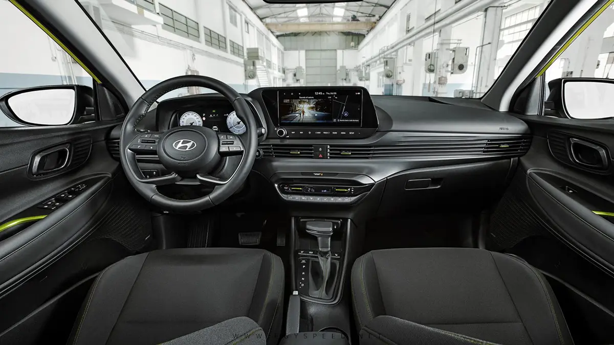 داخل المقصورة لم تُجري هيونداي أي تغيرات تصميمية، مُكتفية بتحسين قائمة التجهيزات الخاصة بسيارتها والتي كانت تُعتبر من الأفضل ضِمن فئتها، شأن الشاشة الكريستالية قياس 4,2 بوصة قياسيًا تصل إلى 10 بوصة اختيارياً لعرض بيانات لوحة العدادات، والنظام الترفيهي المعلوماتي المتطور.