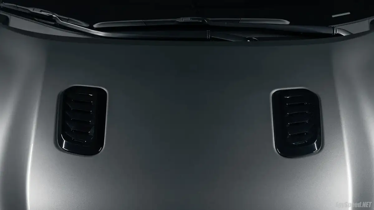 مع مُقدمة رياضية يحتويها مصدٍ أمامي مزود بفتحات ضخمة لتمرير الهواء، وفوهات فعّالة لتحسين معامل سحب السيارة، ولتحكم أفضل في مسار الهواء المار عبر المقدمة، وغطاء مُحرك مُثير الملامح مًصنوع من الألومنيوم، ومزود هو الأخر بفتحات فعّالة لتمرير الهواء.